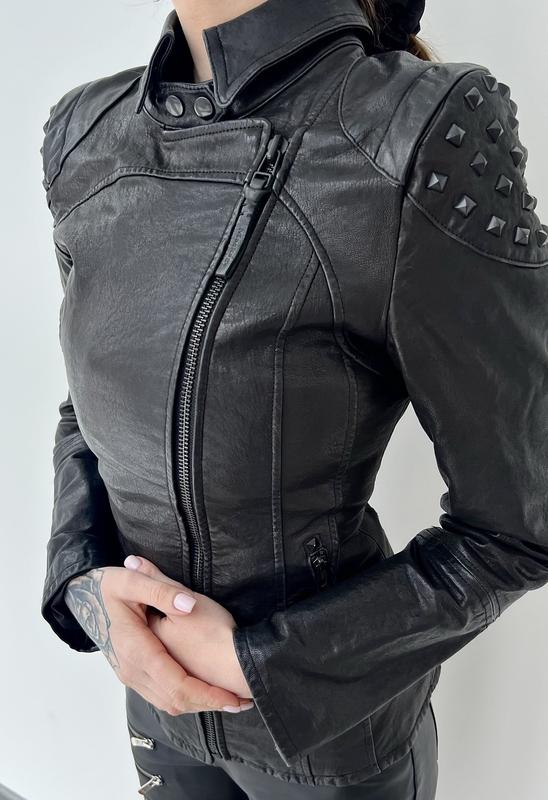 Замовляла з оф. сайту. 100% lamb leather. В дуже гарному стані. Відриваю від сердця, стала мала в грудях. Маркування М, але я вшивала. Підійде на S/XS.