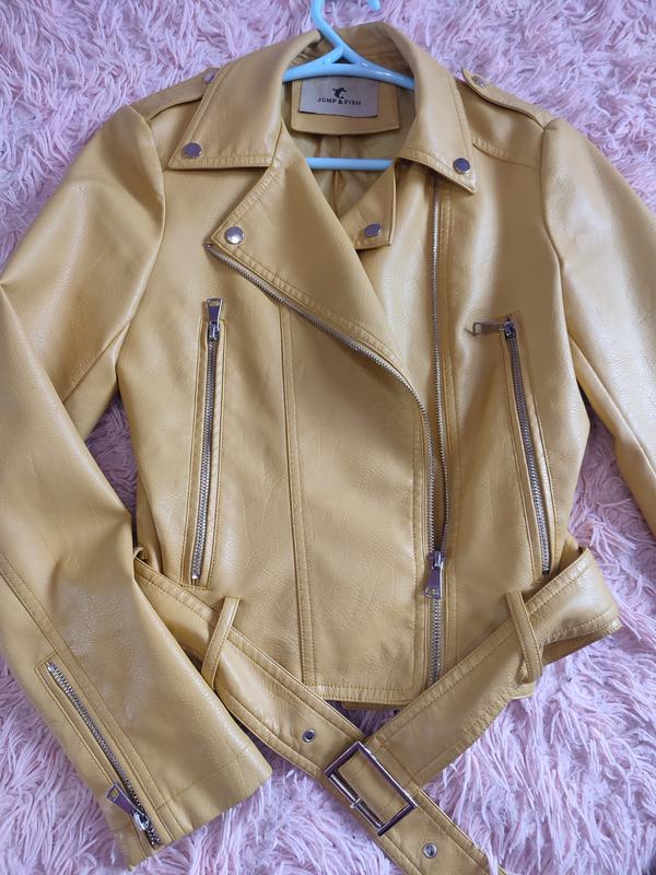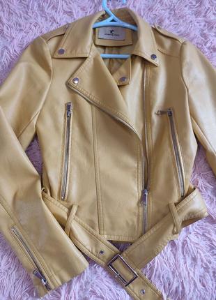 Куртка из эко кожи, желтого цвета размер с,длиж 46см,в плечах 36-37см,рукав 60см