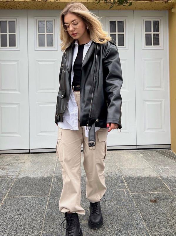 Куртка косуха Размеры 1(42-44),2(46-48) Ткань Экокожа люкс качества, подклад плащевка Замеры Размер 1 Длина по спинке 65см Объем 102см Длина рукава 60см Размер 2 Длина по спинке 65см Объем 112 см Длина рукава 60см