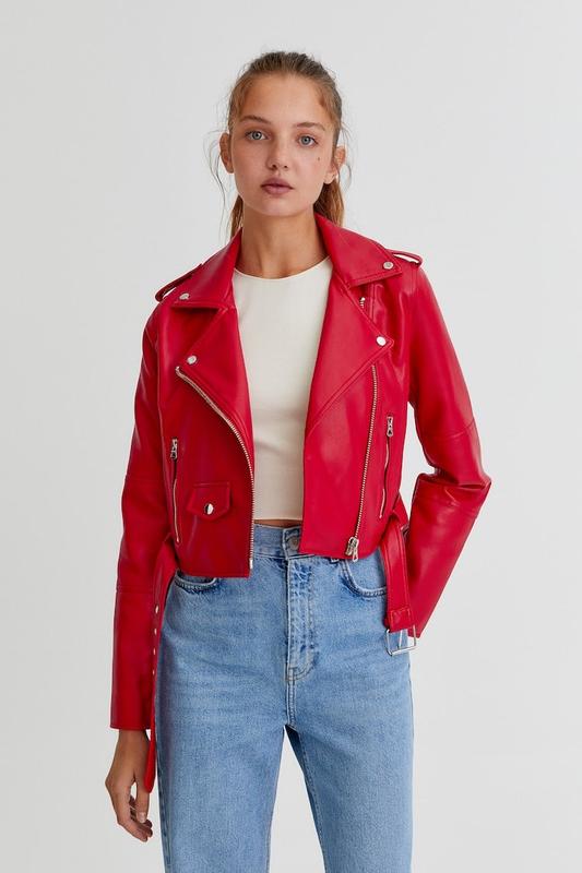 Качественная эко кожа. Размер S. Замеры: длина 45см, ширина 40см, длина рукава от плечевого шва 60см (от горловины - 70см), плечи 35см