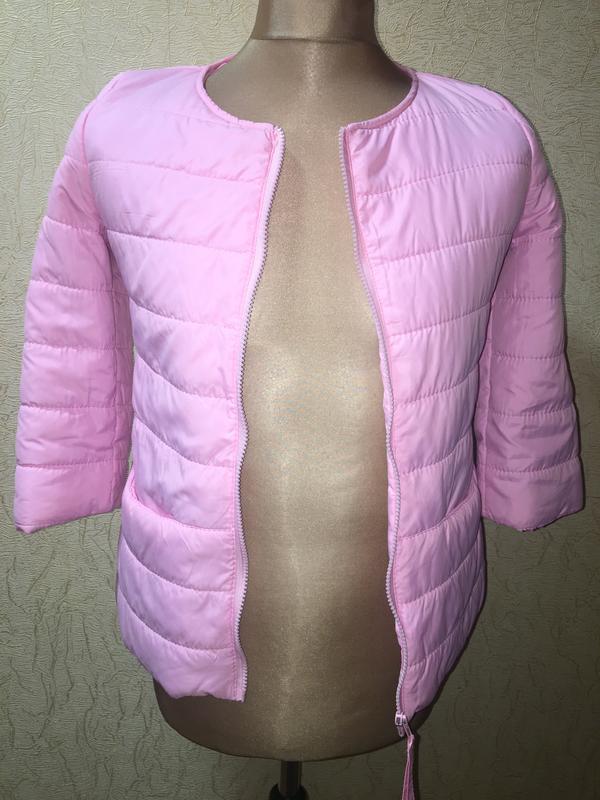 Курточка стеганая розовая, слегка приталенная, на синтепоне, спереди два кармашка (в швах), застегивается на молнию,горловина Шанель,рукав 3/4 Пог 50 Пит 46 Победы 51 Плечи 36 Длина рукава 46 Длина курточки 61