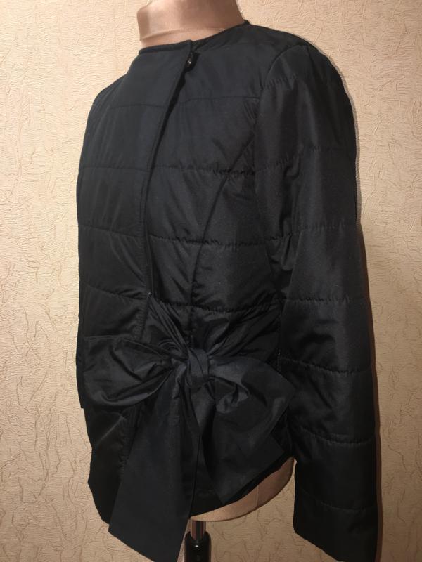 Куртка асиметрія,застібається на блискавку і зав'язується на бант або просто на стрічку,яку можна заховати в кишеню {вшита в бічний шов в кишеню}.Куртка демісезонна,з якісної блискучої тканини,якісною підкладці в горошок,приталена.Виглядає дуже ефектно і жіночно.Воріт Шанель.Є в районі ворота пришивная кнопка,яку за бажанням можна зняти. Утеплювач синтепон,не менше 200. Пог 53 Довжина рукава 60 Плечі 42 Довжина 62 Побіди 58