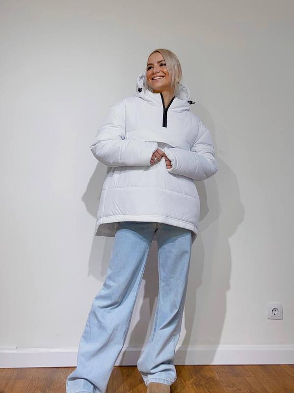 Ексклюзивна новинка Куртка Анорак *Анорак- легкая ветрозащитная куртка из плотной ткани с капюшоном, надевается через голову и не имеет обычного разреза с застежкой спереди* В средние наполнитель, 150 синтапух, можно надевать уже сейчас Плотна плащовка Спереди карман, и по бокам 2 кармана Круто сочетается с различными элементами гардероба Комфорта и стильная С 42-46 размер Цена 1100 грн Длина впереди 65 см Длина по спинке 70 см Полуохват груди 56 см Рукав от горловины 70 см