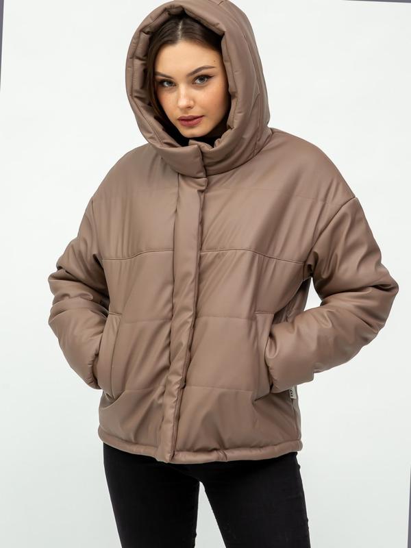 Демисезонная кожаная куртка с капюшоном. Модель с длинными рукавами и воротником-стойкой. По бокам расположены карманы. Застегивается на молнию и кнопки. 📍Артикул: 18294/1 👗Размеры: 42, 44, 46, 48, 50 🪡Материал: эко кожа