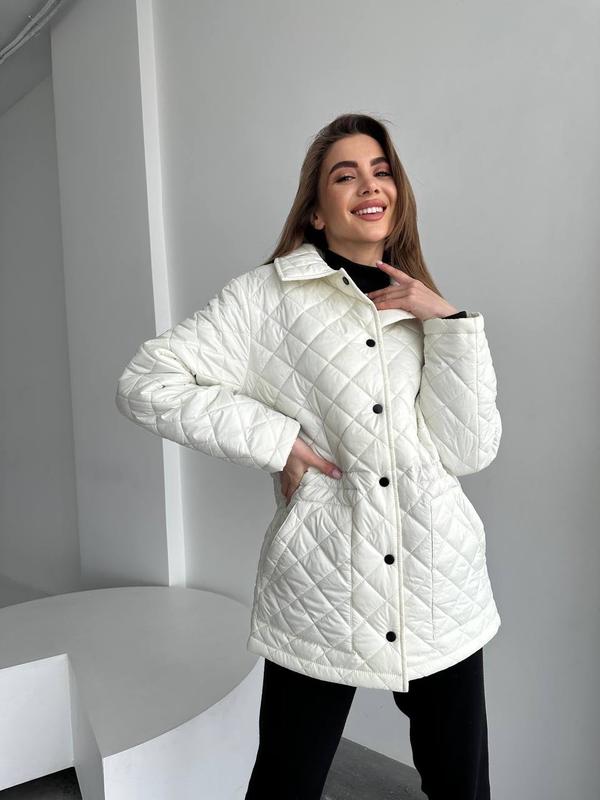 Весняна куртка стьобана демісезонна. Детальніше про куртку: Фасон прямий вільний, акцент по талії можна виділити (всередині гумка на кулісі регулюється) Розміри: XS-S(42-44), M-L(46-48), XL(50-52) Колір: чорний, білий, бежевий Тканина плащовка лаке стьобана Утеплювач силікон щільність 100 Ціна 1375грн 📌ЗАМІРИ по верху виробу 🔸XS-S (42-44): Довжина виробу – 74 см Довжина рукава -58 см, довжина плеча - 14,5 см Обхват грудей - 110 см, талія - 104 см, стегна - 110 см 🔸M-L (46-48): Довжина виробу – 75 см Довжина рукава -59 см, довжина плеча - 15,5 см Обхват грудей - 116 см, талія - 112 см, стегна - 116 см 🔸XL(50-52): Довжина виробу – 76 см Довжина рукава -59 см, довжина плеча - 16,5 см Обхват грудей - 120 см, талія - 116 см, стегна - 120 см