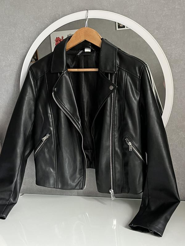 Шкіро замінник , одягалась для фотосесії . Довжина по спинці 42, спереду 52,полуобьем грудей 45. Є нюанс на комірі, на фото видно