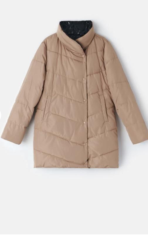 Зимняя двухсторонняя куртка женская. Черная с одной стороны, бежевая с другой. Имеет застежки на кнопки, два кармана, свободный крой высокий воротник. Размер S-M Одетая один раз, была подарена куртка но это не мой стиль.