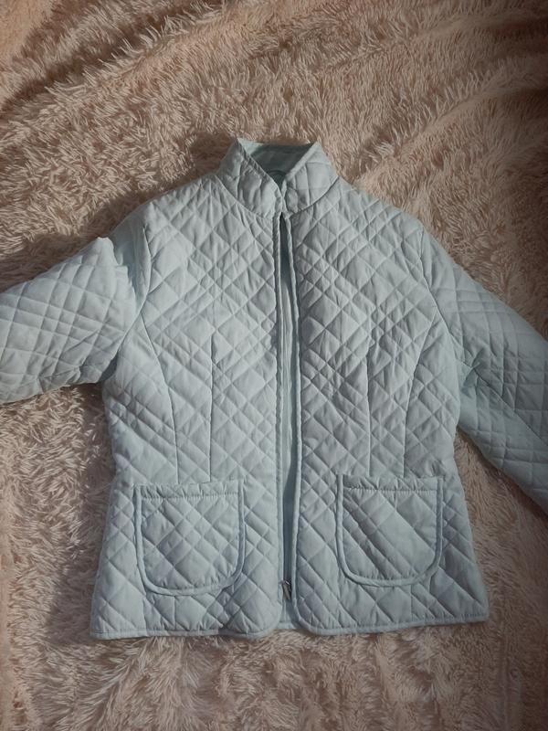 куртка сезон : весна/ осень цвет голубой низкий воротник застежка-замочек сбоку расположены карманчики.