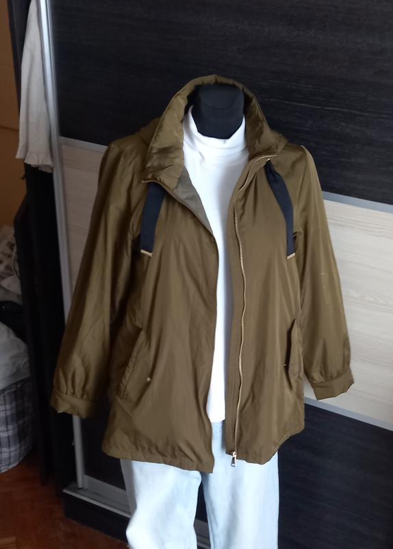 Куртка - ветровка с капюшоном от бренда next (rainwear collection). Очень красивый цвет. Непромокаемая ткань. Застегивается на молнию золотистого цвета. Имеется два кармана, которые застегиваются на кнопки. Фасон - слегка расширенный книзу, длина по спине чуть больше, чем спереди. Имеется пояс. На простеганной подкладке с легким наполнителем. Размер 14 EUR - 42 Замеры: длина спереди - 72 см, сзади - 79 см, ПОГ - 50 см, ПОБ - 64 см. Рукав от плеча - 60 см, от проймы - 47 см. На манжете, который застегивается на кнопку.