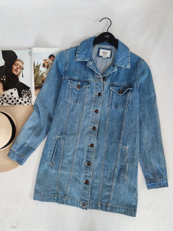🌿джинсовая куртка Forever 21 удлиненной модели с боковыми карманами Размер:S Замеры:ПО груди 46 см, длина 76 см, рукав 58 см