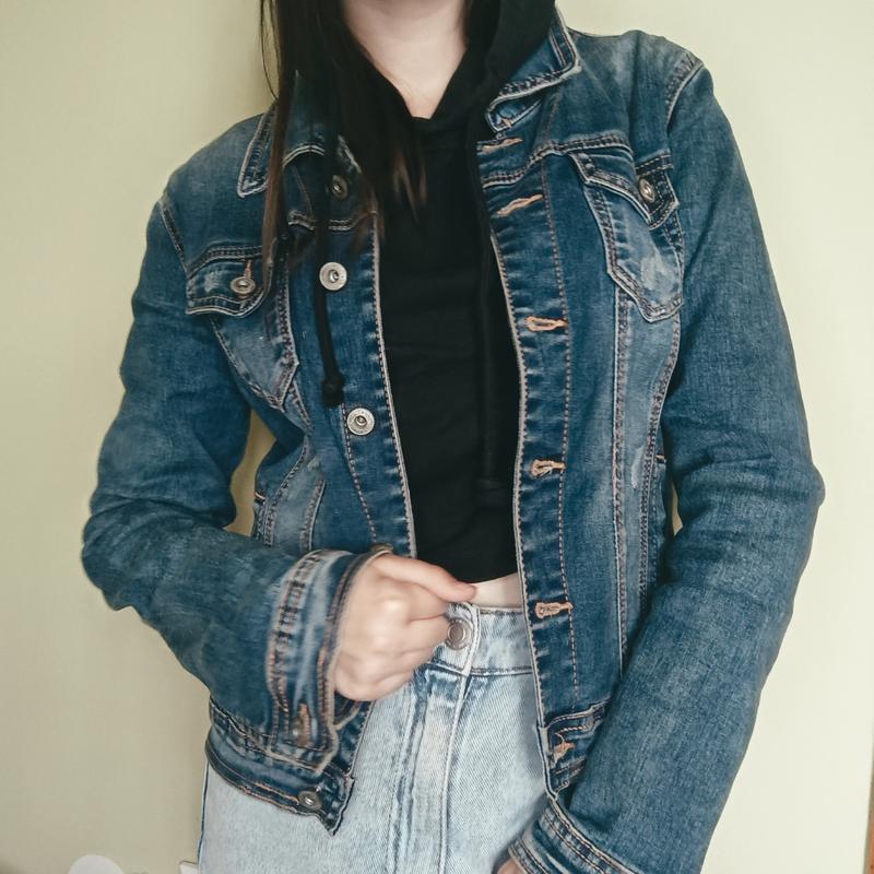 Джинсовка в хорошем состоянии. Размер S-М. Из недостатков это оторваная пуговица на левом рукаве,я пришивала вручную. Можно подшить нитью