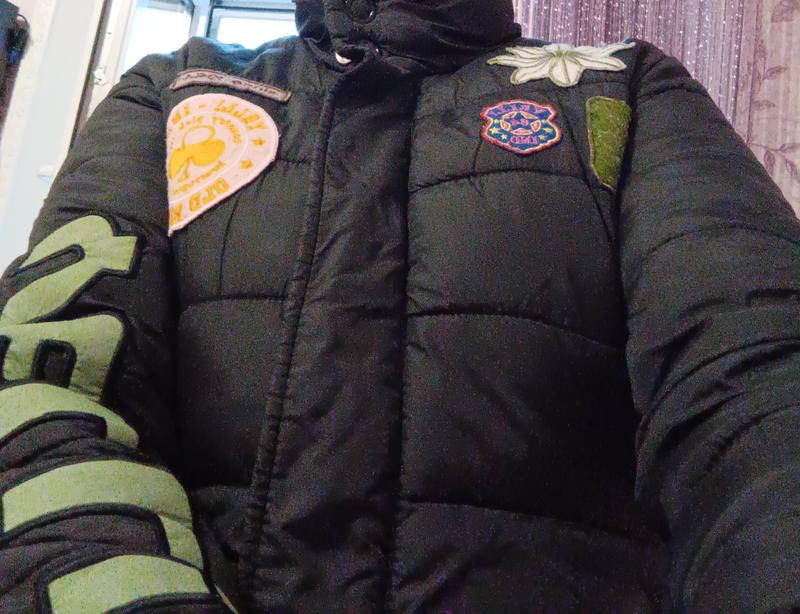 Осенняя куртка, черного цвета, с нашивками, размер 44-46