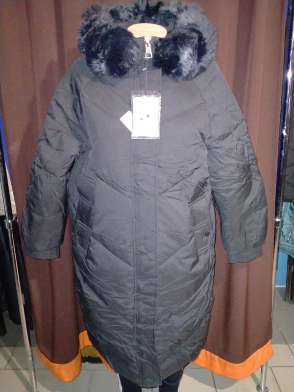 Куртка женская черная, длинная, зима, с капюшоном с искусственным мехом.в-4303. размеры:м;...