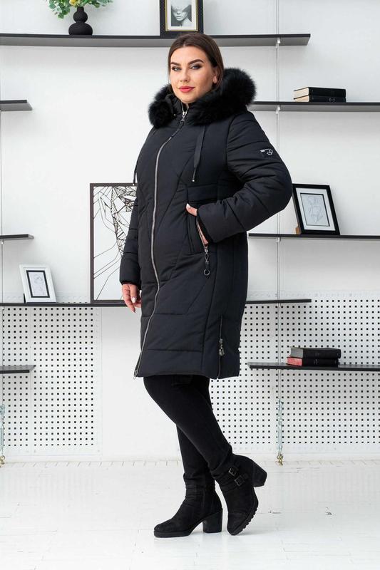 Черная батальная зимняя теплая женская куртка пуховик на тинсулейте с мехом. бесплатная до...
