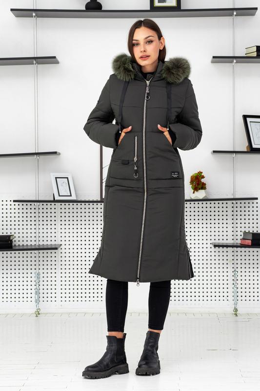 Бесплатная доставка Производитель - Украина Сезон - Зима Ткань - плащевка «КАНАДА» (не продувается и не впитывает влагу) Утеплитель - тинсулейт 250 (искусственный пух) (новейший утеплитель высокого качества), мягкий, воздушный, простой в уходе. Подкладка - 100% цветной сатин Капюшон - отстегивающийся Мех -- отстегивающийся, ХВОСТ ПЕСЦА Манжет - трикотаж Цвет - хаки 44 - длина 104 см, рукав 64 см 46 - длина 105 см, рукав 64 см 48 - длина 105 см, рукав 64 см 50 - длина 106 см, рукав 64 см 52 - длина 106 см, рукав 64 см 54 - длина 107 см, рукав 64 см 56 - длина 107 см, рукав 64 см 58 - длина 108 см, рукав 64 см Каждой женщине в любую пору года хочется чувствовать себя стильно и комфортно. Зимой особенно сложно подобрать верхнюю одежду отвечающую этим критериям. Предлагаем вашему вниманию зимнюю женскую куртку «КЗ-520». Это удлиненное пальто приталенного силуэта. Зимняя куртка очень теплая, рассчитана на температуру до -20 градусов мороза. Изготовлена парка из плотной не продуваемой ткани с водоотталкивающим эффектом, под названием «KANADA». Утеплитель -- ТИНСУЛЕЙТ. Это самый современный утеплитель наивысшего качества. В куртке используется новейшая, стильная фурнитура производства Турции. По переду куртки два прорезных, боковых кармана. На правом кармане матовая силиконовая нашивка. Под центральной молнией вшит ветровик, для защиты от ветра. На рукаве светоотражающая нашивка. Капюшон съемный, на молнии. Застежка на молнию, молния двуходовая. По бокам изделия функциональные молнии, которые можно растегнуть. Изделие можно заказать в таких мехах: искусственная чернобурка с черной под опушкой, натуральный хвост песца цветом в тон изделия, натуральная чернобурка, натуральный мех енот. Натуральные меха высокого качества от производителя - Финляндии. Его так же, как и капюшон, можно снять при помощи молнии. Воротник -- стойка. Внутри рукавов трикотажные манжеты, благодаря которым регулируется длина рукава. Жмите на кнопки, чтобы увидеть все модели и отзывы о нашей работе.