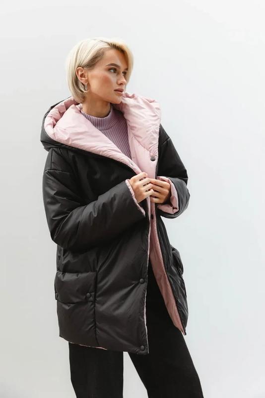 Матеріал щільна плащівка, синтепух 250 Колір чорний-рожевий Фурнітура кнопки Фасон прямий, вільний Сезон зима, демісезон Декоративні елементи декоративні шеврони та кишені Конструктивні елементи капюшон, двухстороння куртка, витримує до -15 градусів температури Комплектація куртка, пояс Догляд за одягом ручне прання до 30° Довжина виробу S-M = 81 см, L-XL = 81 см, XXL-3XL = 81 см Довжина рукава S-M = 54 см, L-XL = 54 см, XXL-3XL = 54 см Найбільший асортимент якісного жіночого одягу на нашому сайті ********** Замовлення можна оформити через Вайбер Розмір підбирайте відповідно таблиці: (але обов'язково враховуйте заміри виробу в описі товару вище)