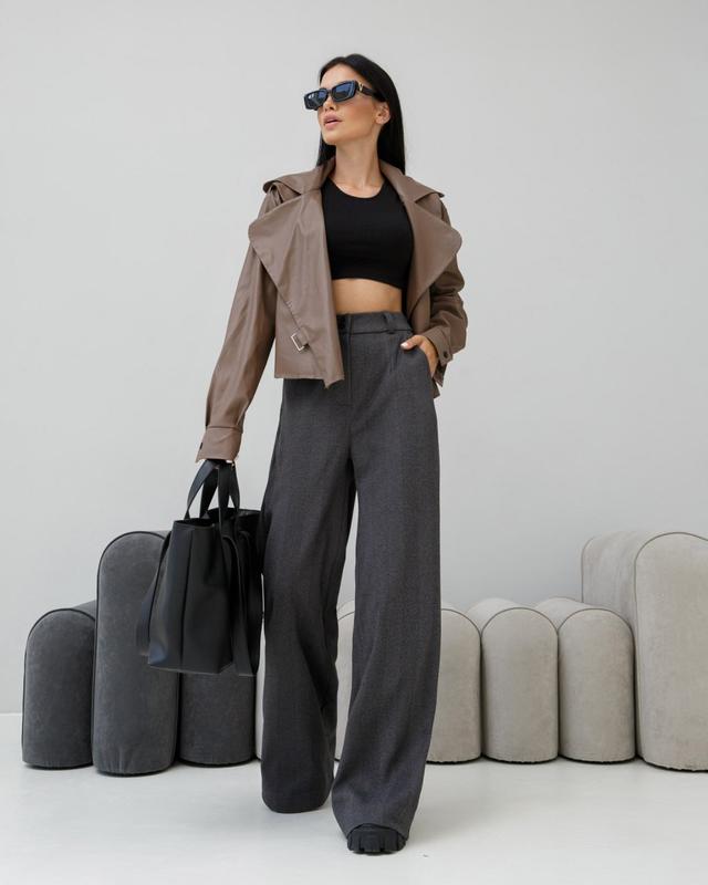 📐 Замеры по готовому изделию: Обхват груди: S-106; M-110; L-114; XL-118; Ширина внизу: S-110; M-114; L-118; XL-122; Ширина рукава сверху: S-18; M-18,7; L-19,4; XL-20,3; Длина изделия из спинки: S-49; M-49,5; L-50; XL-50,5; Длина рукава по внутреннему шву: S-50; M-50; L-50; XL-50 . *Параметры модели на фото и видео: 86-64-89. Рост модели : 170 см . *На модели размер S (42/44). Короткая куртка из экокожи - универсальная и практичная модель, которую можно с легкостью скомпоновать с любым типом одежды. · Модель свободного кроя оверсайз с интересным двубортным полупоясом на кнопках. · На плечиках предусмотрены декоративные «погоны» , придающие образу оригинальности. · Модель на подкладке. · Силуэт: свободный · Рукав: втачной · Застежка: двубортная с полупоясом на кнопке. · Воротник (горловина): отложной · Карманы: нет ( - ) · Декоративные элементы: погоны, фигурные хлястики из плечевого шва. ✅ Материал верха: эко кожа на замше Состав материала: 94% полиэстер, 6% другие волокна ✅ Материал подклада: нейлон Состав подкладки: 100% нейлон. 🌈Цвета: молочный, мокко, черный 📐Размерный ряд: S, M, L, XL 📐 Замеры по готовому изделию: Обхват груди: S-106; M-110; L-114; XL-118; Ширина внизу: S-110; M-114; L-118; XL-122; Ширина рукава сверху: S-18; M-18,7; L-19,4; XL-20,3; Длина изделия из спинки: S-49; M-49,5; L-50; XL-50,5; Длина рукава по внутреннему шву: S-50; M-50; L-50; XL-50 . *Параметры модели на фото и видео: 86-64-89. Рост модели : 170 см . *На модели размер S (42/44). *Производитель оставляет за собой право на смену фурнитуры на подобную. ✅ В дополнение к образу можно приобрести брюки - палаццо (цвета - коричневый, серый, темно - серый) ✅Уход: -Категорически нельзя использовать для стирки жесткие щетки и скребки. -Запрещен интенсивный отжим и сушка в машинке!!! -Стирать вещи из экокожи можно вручную, не выкручивать. -Запрещается высушивать изделие на солнце или возле отопительных приборов. **В зависимости от цветопередачи Вашего монитора, оттенок изделия может немного отличаться . 💎 Материалы premium качества, протестированы на усадку, прочность, износостойкость 👌🏼 💎 Высококачественный пошив на оборудовании из Германии и Японии. 💎 Фабричное производство, официальная торговая марка. 💎 Наложенный платеж с предоплатой по Новой Почте. 💎 Отправка заказа по Украине Новой Почтой с предоплатой или по полной 100 % предоплате . 💎 Возврат / Обмен согласно Закону Украины "О защите прав потребителя" 💎 Фабричное производство, официальная торговая марка
