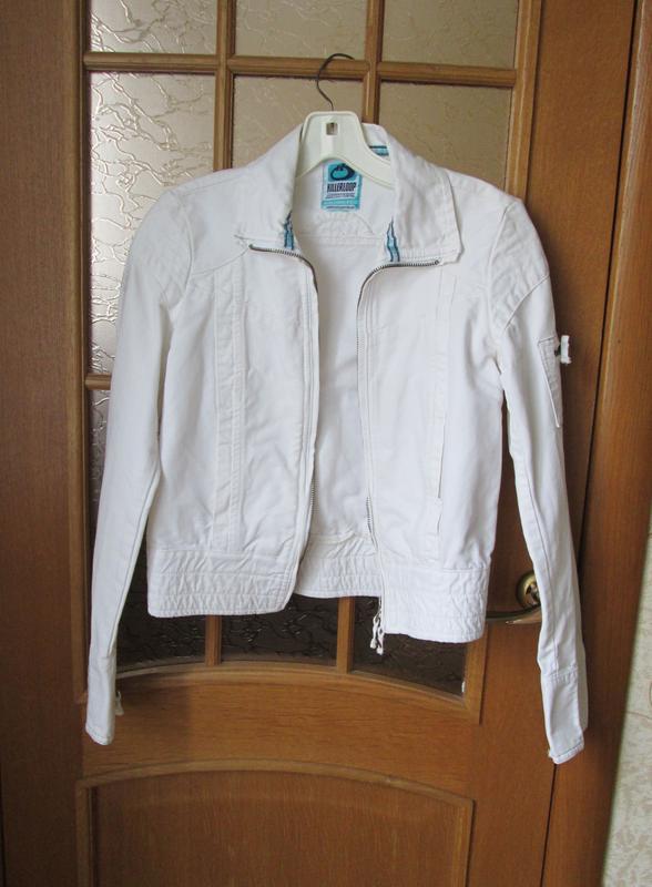 Коттоновая куртка Killer Loop, очень плотная, производство Италия, б/в отличном состоянии, состав 100% коттон, размер 40-44. Длина от плеча спереди 51 см, длина рукава 62 см, ширина подмышками 45 см (не тянется), спереди два кармана.