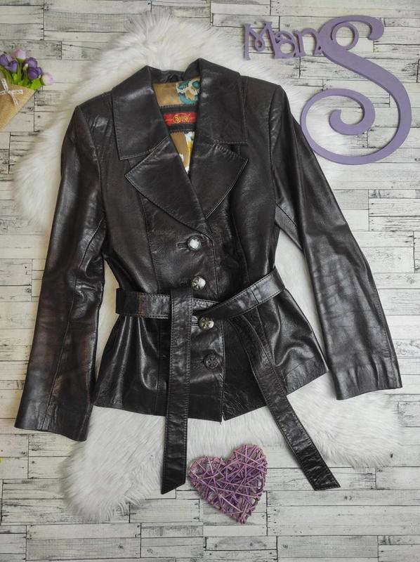 Жіноча куртка sirena натуральна шкіра коричнева з поясом розмір 44 s