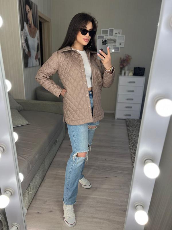 УЛЮБЛЕНА МОДЕЛЬ В НАЯВНОСТІ Куртка Мод #M/₽F 014 Цена: 810 грн❣ Размеры: 48-50, 52-54, 56-58 Ткань: плащевка лаке стеганая на синтепоне 100 с подкладкой. Цвета: черный, мокко, белый. Куртка прямого кроя, имеет боковые карманы, застежки - пуговицы. Замеры: 48-50 ОГ 110, ОТ 110, длина изделия 72, длина рукава 60, пройма 23 52-54 ОГ 118, ОТ 118, длина изделия 72, длина рукава 60, пройма 25 56-58 ОГ 126, ОТ 126, длина изделия 72, длина рукава 60, пройма 27