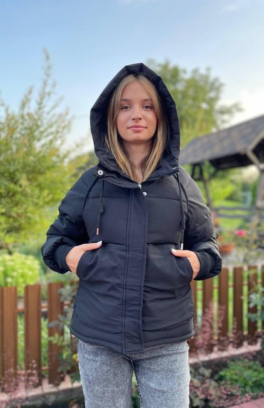 Черная женская куртка с капюшоном осенняя