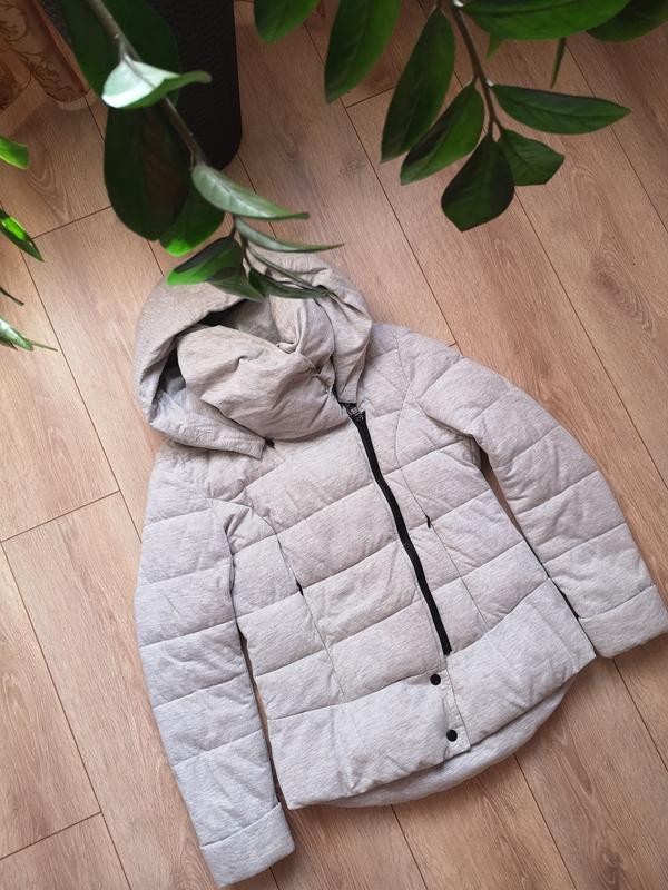 Теплая, легкая куртка в идеальном состоянии, серого цвета. Высокий воротничок. Капюшон снимается. Размер S Длина перед 62 см Длина сзади 67 см Под руками 49 см рукав 60 см Плечи 41-42 см