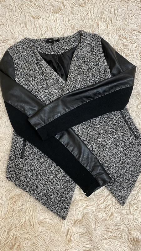 Легкая куртка накидка, не застегивается, есть два кармана. Рукава ено кожа+ткань. Спереди куртка длиннее. Стан идеален, кожа не потерта / не облезла. Размер s-m