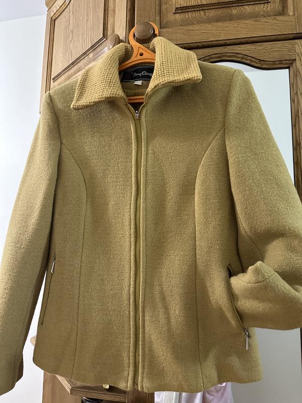Интересного горчичного цвета из пальтовои ткани и трикотажным воротничком. Ширина плечей-42см ПОГ-48см ПОБ-52см Длина-64см Длина рукава-63см