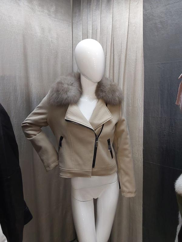 Женская кашемировая косуха с натуральным мехом финского песца Мех песца в расцветке светлый соболь Воротник бабочка Кашемир турецкого производства Цвет - бежевый Подкладка из сатина Утеплитель слимтекс 100 Фурнитура металлическая Длина 55 см Размерная сетка 42-54