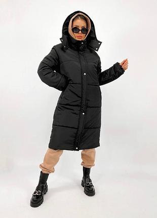 Женская длинная теплая зимняя куртка, курточка, пуховик с капюшоном
