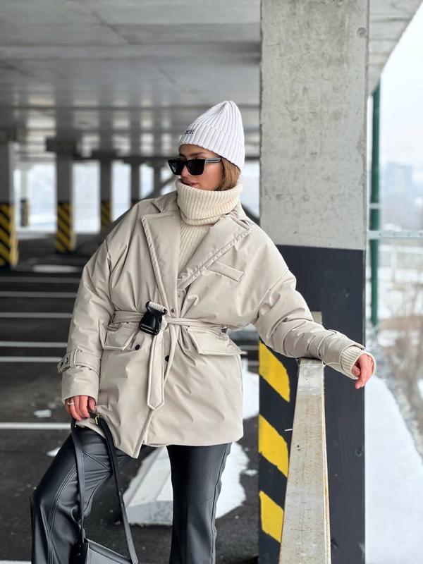 Матеріал : щільна плащівка , підклад лаке Утеплювач : силікон 150 Колір : білий пісок , джинс, чорний Розмір : S, M С Груди до 94 Талія вільна Бедра до 98 Довжина 77 Довдина рукава від горла 76 М Груди до 100 Талія вільна Бедра до 104 Довжина та сама
