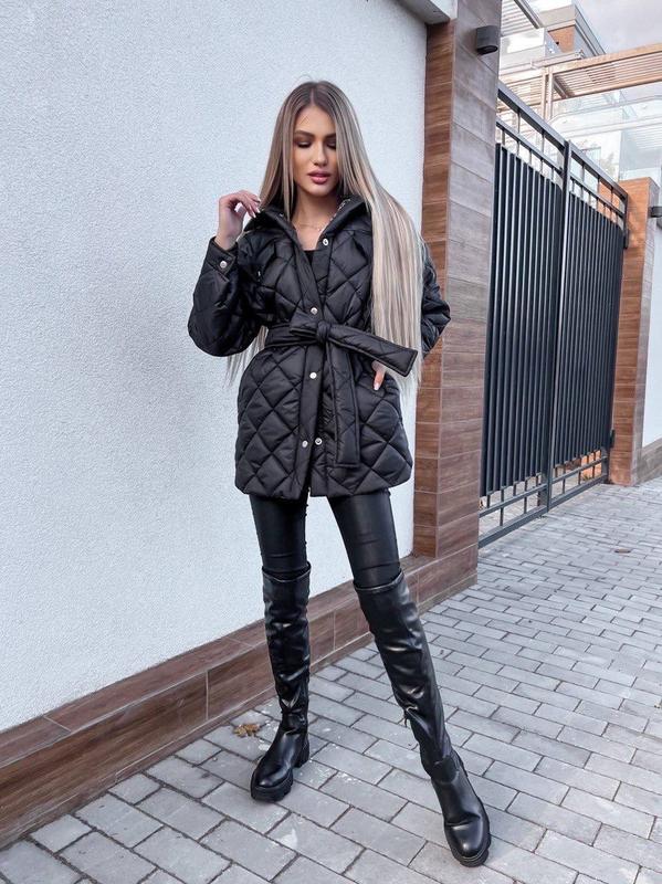 Стеганые куртки на 150 силиконе. Пояс у комплекті. Ткань: плащевка Цвета: лаванда, мокко, морская волна, бежевый, черный, белый Размер: с-м, л-хл Больше новинок в телеграмм Снижка для подписчиков-10%