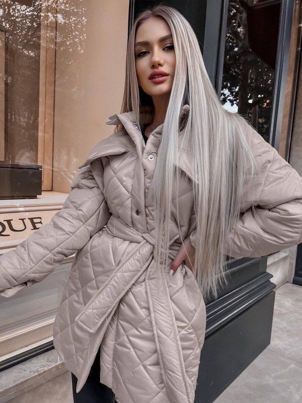Стеганые куртки на 150 силиконе. Пояс у комплекті. Ткань: плащевка Цвета: лаванда, мокко, морская волна, бежевый, черный, белый Размер: с-м, л-хл Больше новинок в телеграмм Снижка для подписчиков-10%