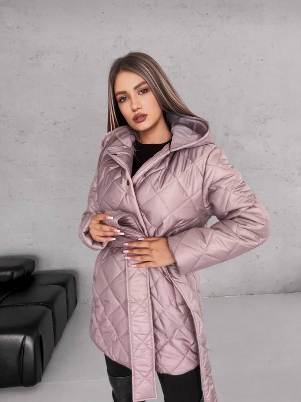 Куртка женская стеганая с капюшоном, пояс в комплекте, карманы врезные, наполнитель силикон 200 Ткань: плащевка Размер: с-м, л-хл Больше товаров в телеграмм Снижка для подписчиков-10%