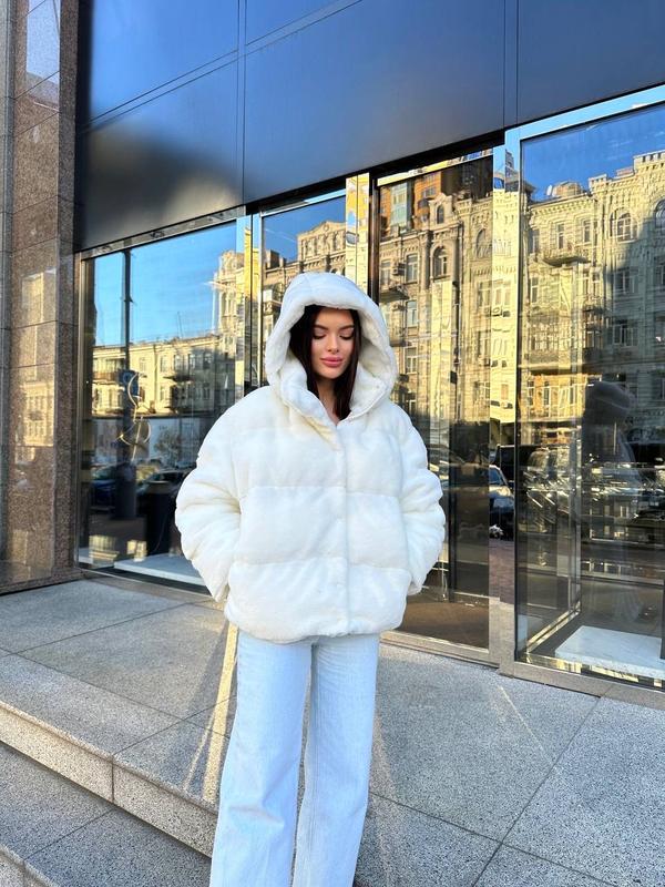 S 50 Меховая куртка с наполнителем экопух Капюшон снимается Размер : S,M Цена : 4500грн Замеры S Длина изделия 57 см Длина рукава от горловины 70 см Объем груди до 95 см Объем талии до 90 см Замеры M + 4 см в об<unk> емках