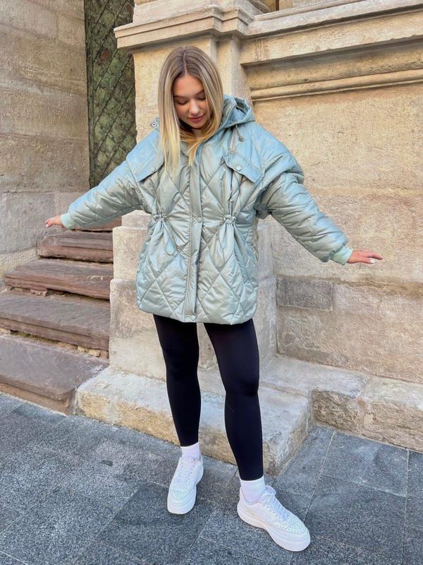 Куртка с капюшоном Размеры Universal Ткань плащевка стеганая на наполнитель 150, подклад плащевка, трикотажные манжеты рукавов. Замеры Длина по спинке 76см Объем груди 152см Объем бёдер 132см Длина рукава от горловины 75см