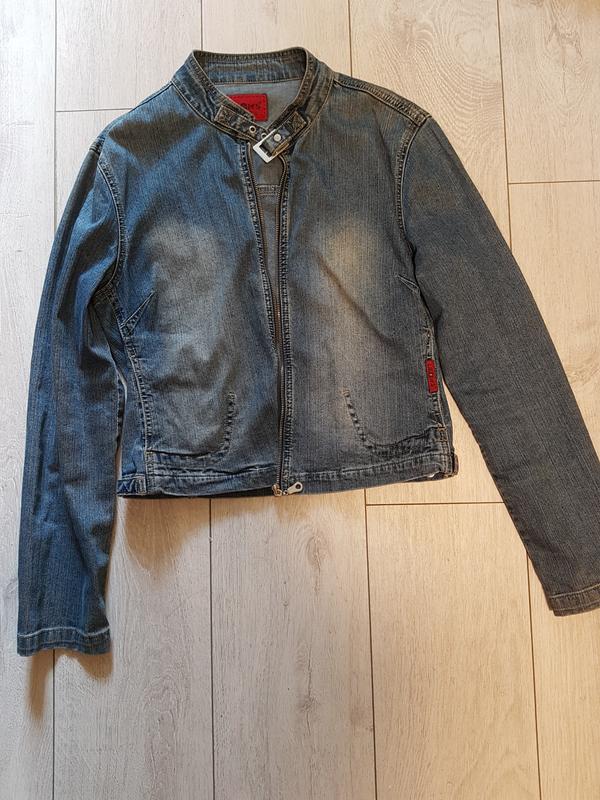 Джинсовый куртка. Указан размер Л, но как по мне будет лучше на размер М. Длина 54 см. ПОГ 46 см. Немного тянется.