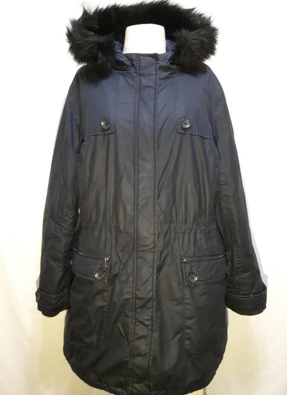 Женская куртка со съемным искусственным мехом . Осенняя, весенняя, зимняя. парка размер 22-24, цвет темно-синий как на фото в одном размере, замеры: плечи 50 см, ширина горловини 28 см, плеча 12 см ПО груди 74 см, ПО пояса 70 см, бедер 77 см, низа 78 см, Длина от плеча 90 см длина рукава от плеча 64-65 см, ПО бицепса 23 см, трикотажного манжета -11 см. изнутри стеганая, в поясе изнутри есть утяжка, внизу 4 кармана - два на пуговицах, два на молнии, капюшон не отстегивается, отстегивается только мех. отличная фурнитура, замтежка молния и кнопки, осенне-весенняя, можна на еаропейскую зиму. в очень хорошем состоянии.