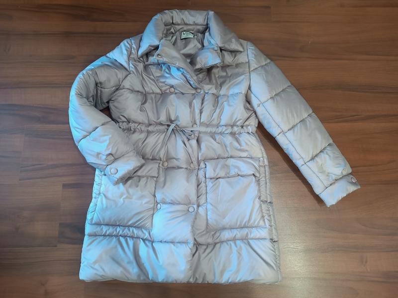 Новая зимняя женская куртка 48 размер. Застежка замок + кнопки Талию можно регулировать с помощью шнуровки. Кармани на кнопках. Ширина в грудях 56 см Длина рукава 59 см Ширина в бедрах 56 см Длина 82 см