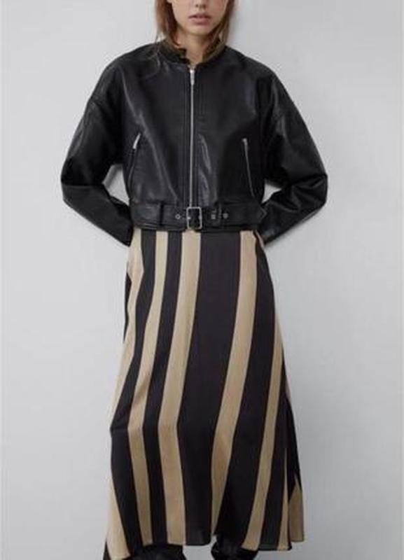 Недорого бомбер із шкірозамінника іспанського виробництва Zara в чорному кольорі. Довжина 50 см Ог 94 см Об 92 см. на талії пояс.