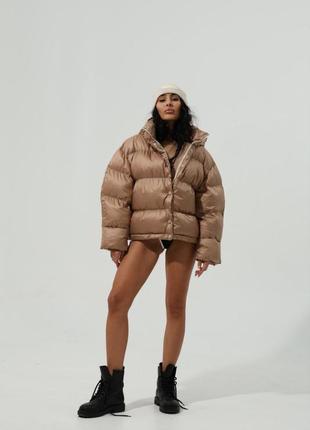 S 50 Куртка с наполнителем экопух Капюшон снимается Размер : S,M Цена: 2800 грн Замеры S Длина изделия 57 см Длина рукава от горловины 70 см Объем груди до 95 см Объем талии до 90 см Замеры M + 4 см в об<unk> емках Есть накладной платеж с подпиской✅