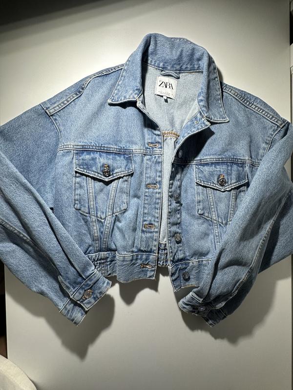 Джинсовый жакет укороченный.Нова и загубленная бирка при перевозке, не подобран размер.На С