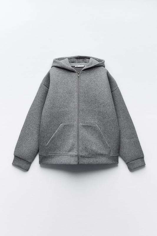 Куртка-бомбер свободного кроя из мягкой на ощупь ткани с неопреновым эффектом. Имеет капюшон. Длинные рукава, опущенные плечи и карманы спереди. Застегивается на металлическую молнию спереди.