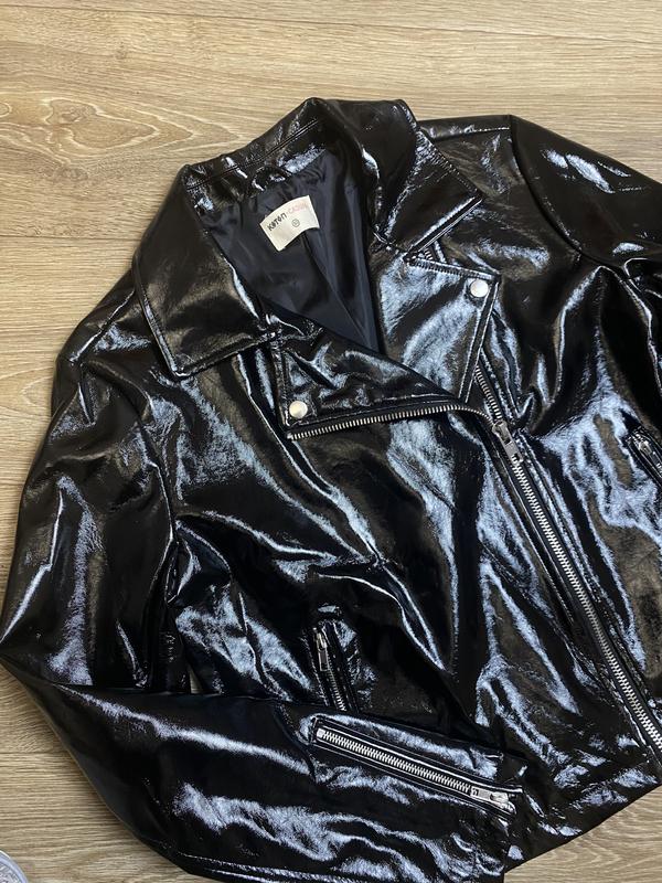Черная косуха из искусственной лакированной кожи. Фурнитура металлическая и исправная. Подклада качественная. Стан идеален, без дефектов!!! Кожа не полопана. Размер по набору 40 Плече 12 Ширина по спинке по лопаткам 39,5 Пог 50 Длина по спинке 52 Рукав 61