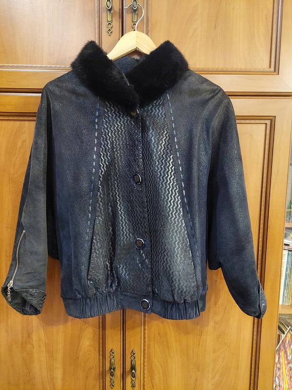 Кожаная куртка в хорошем состоянии, воротник натуральный мех (норка), линия плеча опущенная