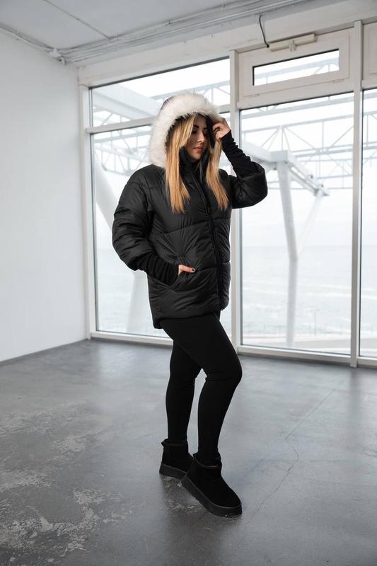 Куртка Ткань: плащевка, синтепон 200, подкладка, рукав измельченный пришитый, на капюшоне искусственный мех также пришитый. Цвета: капучино, белый, черный. Размер: 48-50; 52-54; 56-58; 60-62 Замеры по внешнему шву. 48-50 Ог и об 116 см, рукав 68 см, длина 81/64 см 52-54 Ог и об 122 см, рукав 68 см, длина 81/64 см. 56-58 Ог и об 132 см, рукав 69 см, длина 82/65 см. 60-62 Ог и об 138 см, рукав 69 см, длина 82/65 см.