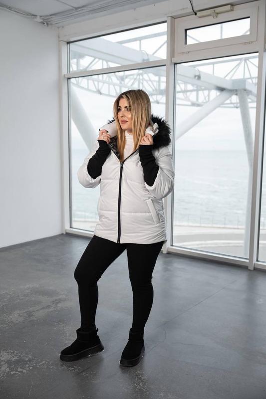 Куртка Ткань: плащевка, синтепон 200, подкладка, рукав измельченный пришитый, на капюшоне искусственный мех также пришитый. Цвета: капучино, белый, черный. Размер: 48-50; 52-54; 56-58; 60-62 Замеры по внешнему шву. 48-50 Ог и об 116 см, рукав 68 см, длина 81/64 см 52-54 Ог и об 122 см, рукав 68 см, длина 81/64 см. 56-58 Ог и об 132 см, рукав 69 см, длина 82/65 см. 60-62 Ог и об 138 см, рукав 69 см, длина 82/65 см.
