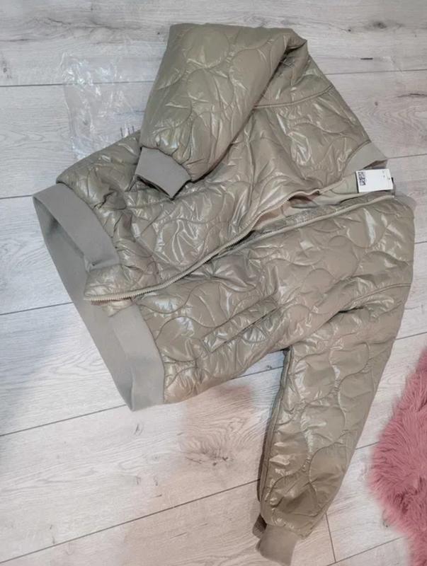 Простора стьобана куртка з легким наповненням, блискавкою спереду та прорізними кишенями. Занижені плечі та довгі широкі рукави. Манжети в рубчик на вирізі, рукавах та поділі. Легенька, приємна на дотик. Дуже класно виглядає По розміру XS, але вона оверсайс, тому на реальну s-ку і м-ку, l- ку буде точно Довжина 66 з манжетом, можна підвернути Ширина 53 Рукав від горловини з манжетом 7B