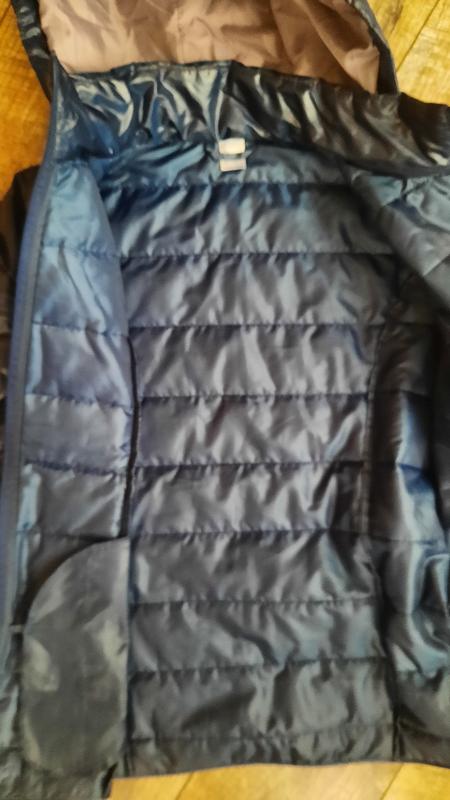 Темно синяя женская куртка. Удлиненная с капюшоном, тонкая, имеет утепление. Идеальное состояние новой. Замеры: ПОП- 44 см, ПОГ- 59 см, ПОБ- 59 см, ПР- 62 см, ДВ- 70 см. Сделано во Вьетнаме.