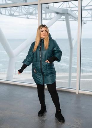 Куртка арт. bro. 1283 Тканина: плащівка, синтепон 200, підкладка, рукав пришитий рібана. Капюшон не знімається. Розміри 48-50; 52-54; 56-58; 60-62 Кольори: чорний, капучіно, смарагд, фіолет